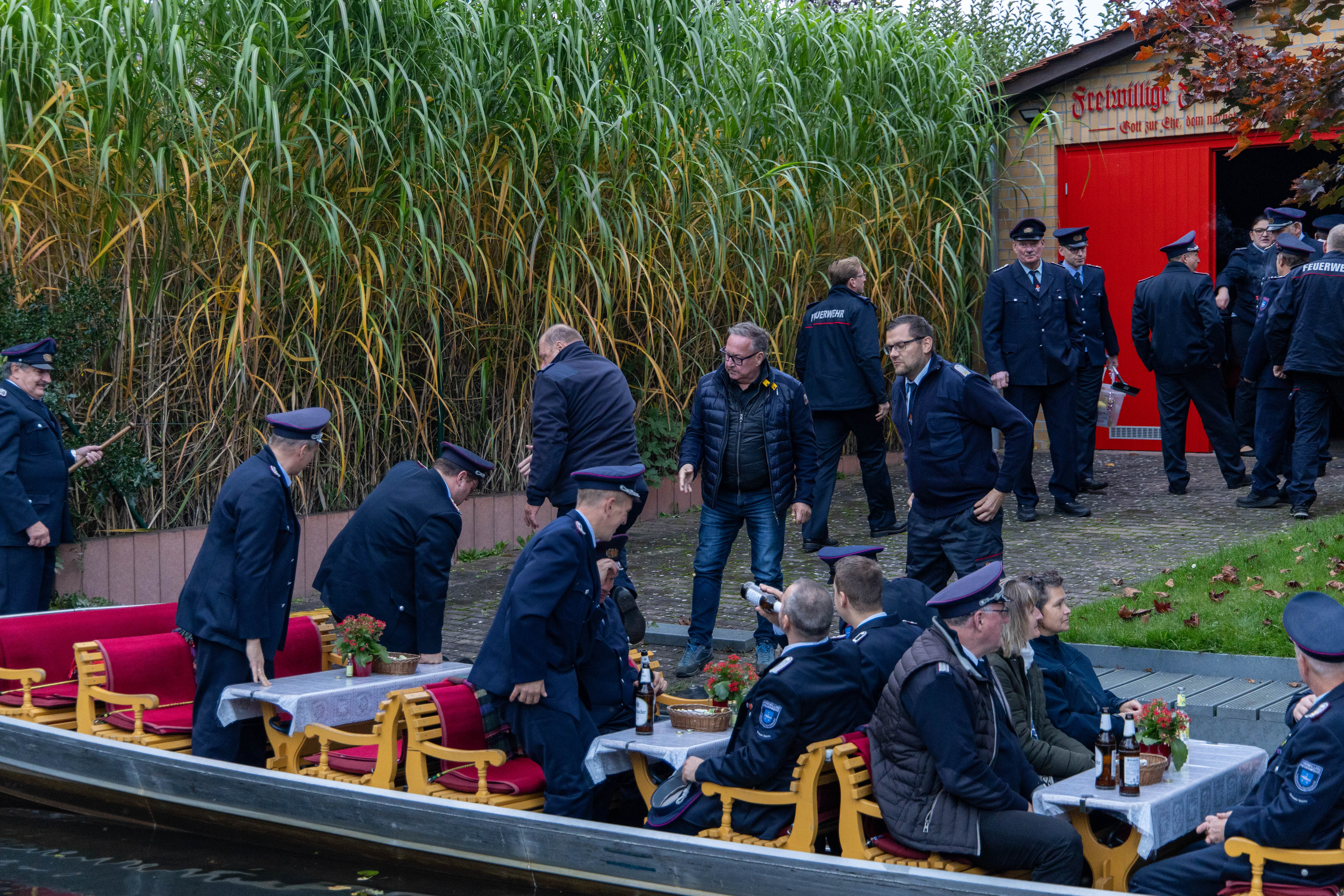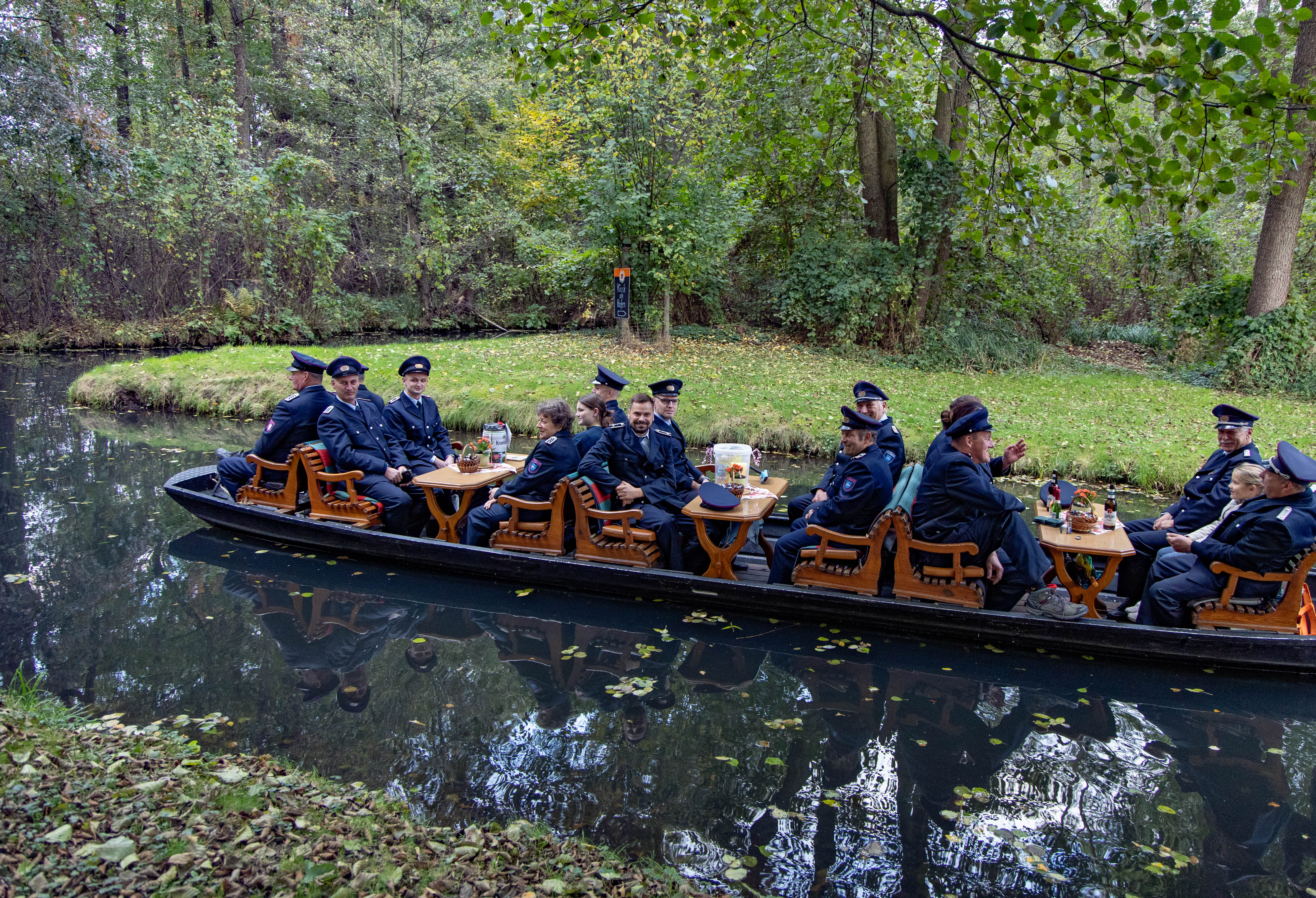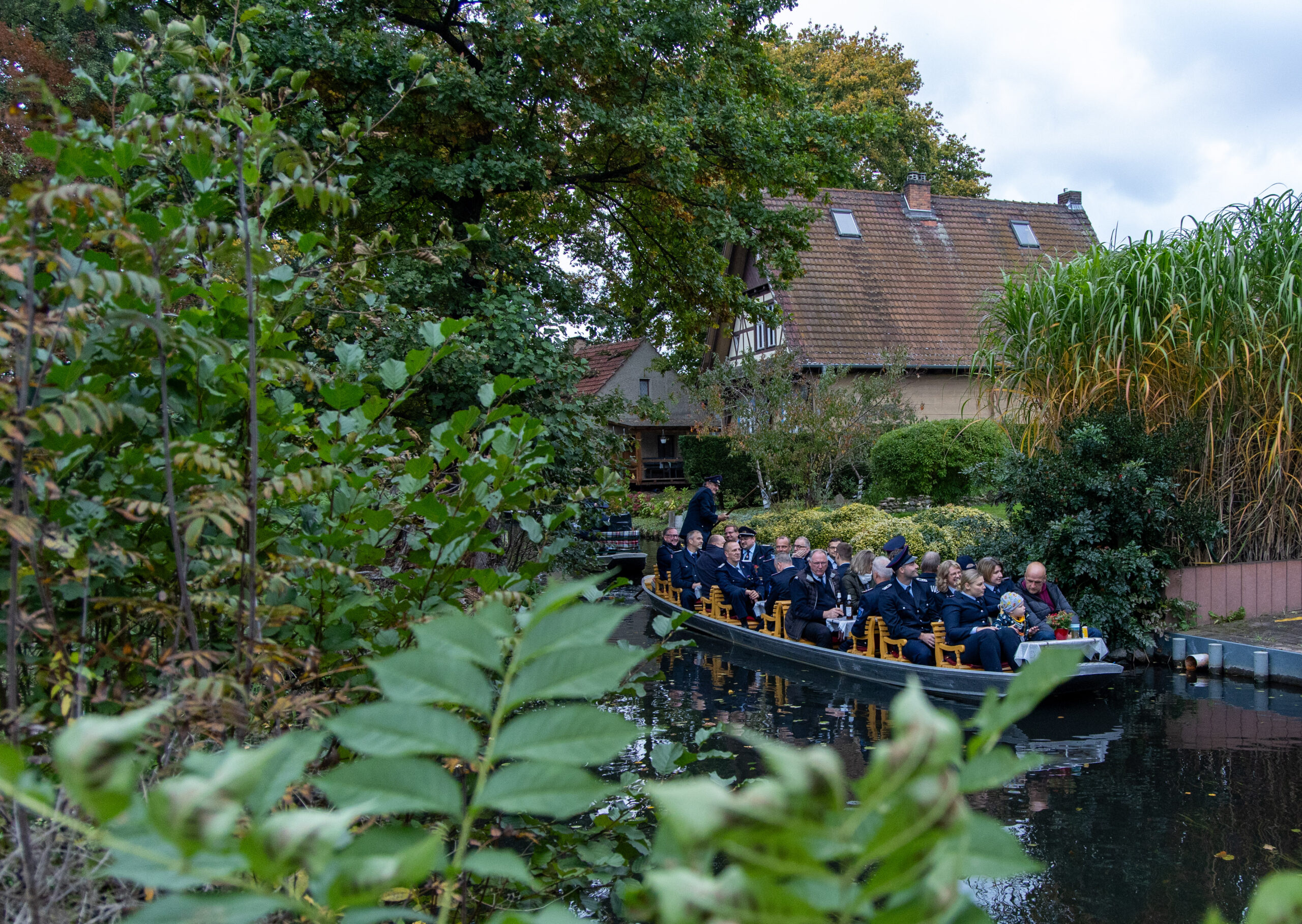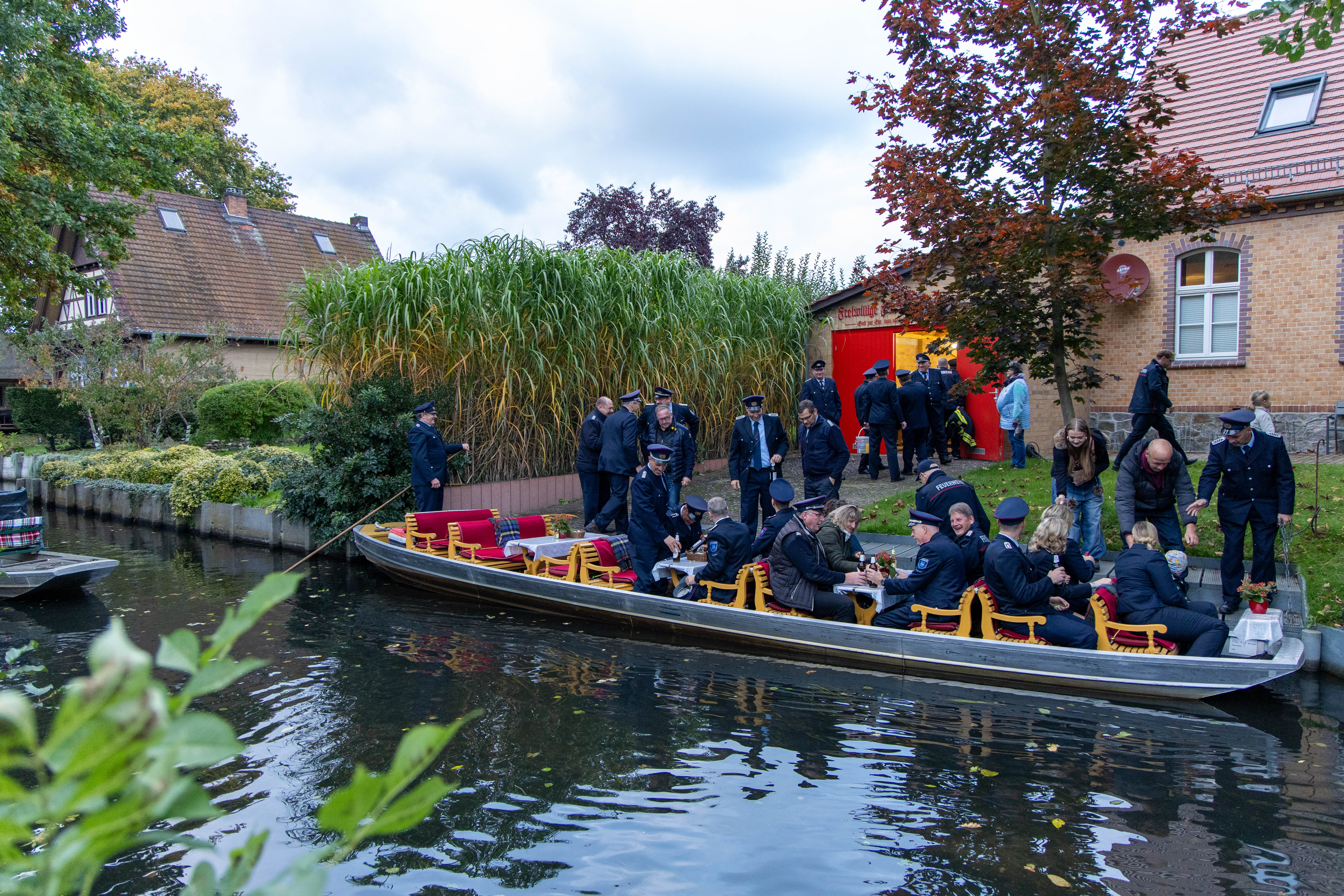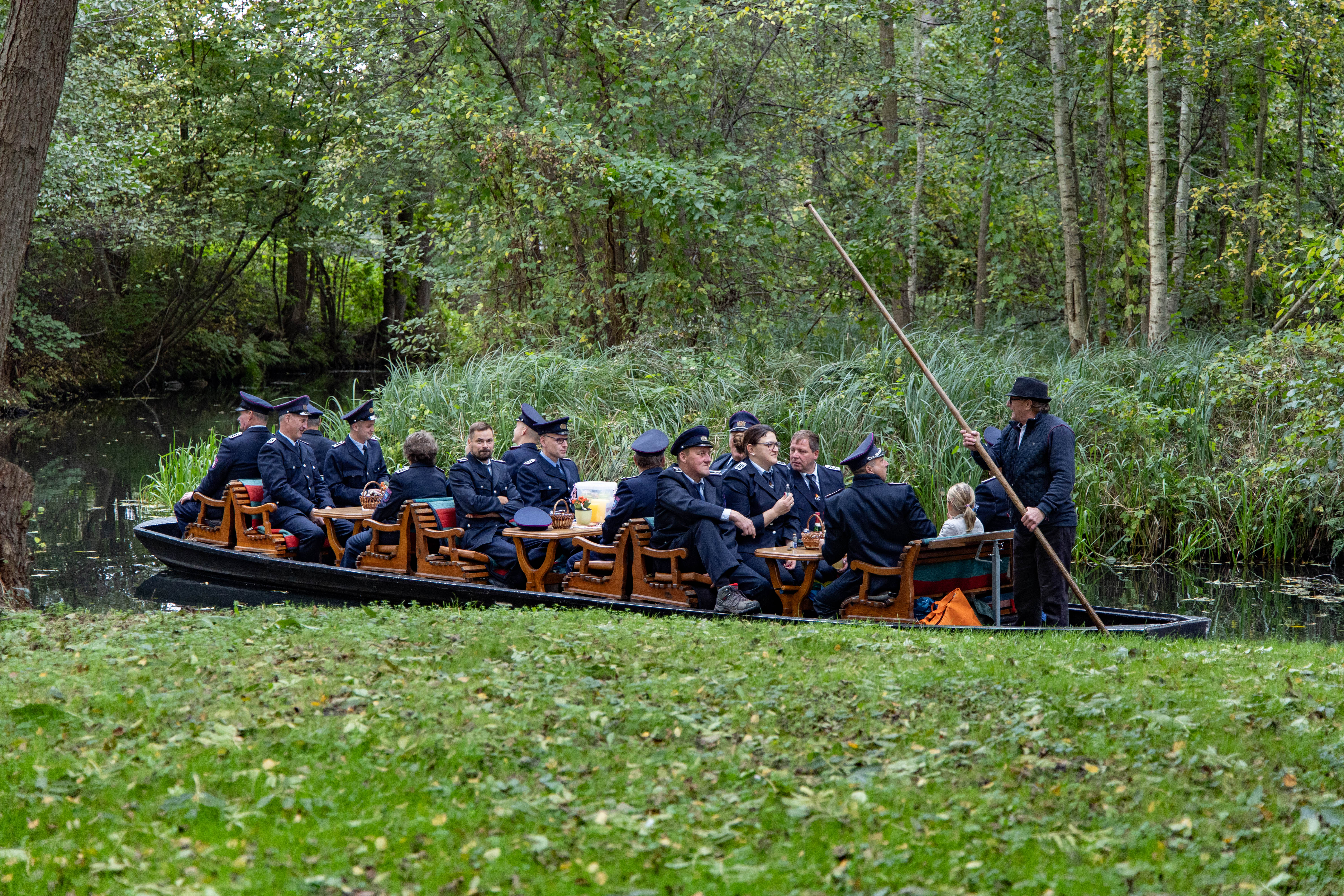 Nur noch wenige Touristen waren in Leipe unterwegs, als sich zwei Kähne, vollbesetzt mit Kameraden und Kameradinnen der Leiper Wehr ebenso, wie mit Abordnungen aus den Nachbarorten, auf den Weg machten. Sie waren gekommen, um nach einer Inselrundfahrt der Einweihung des neuen Tragkraftspritzenfahrzeugs (TSF-W) beizuwohnen, denn das 30 Jahre alte Fahrzeug, war ausgemustert worden.