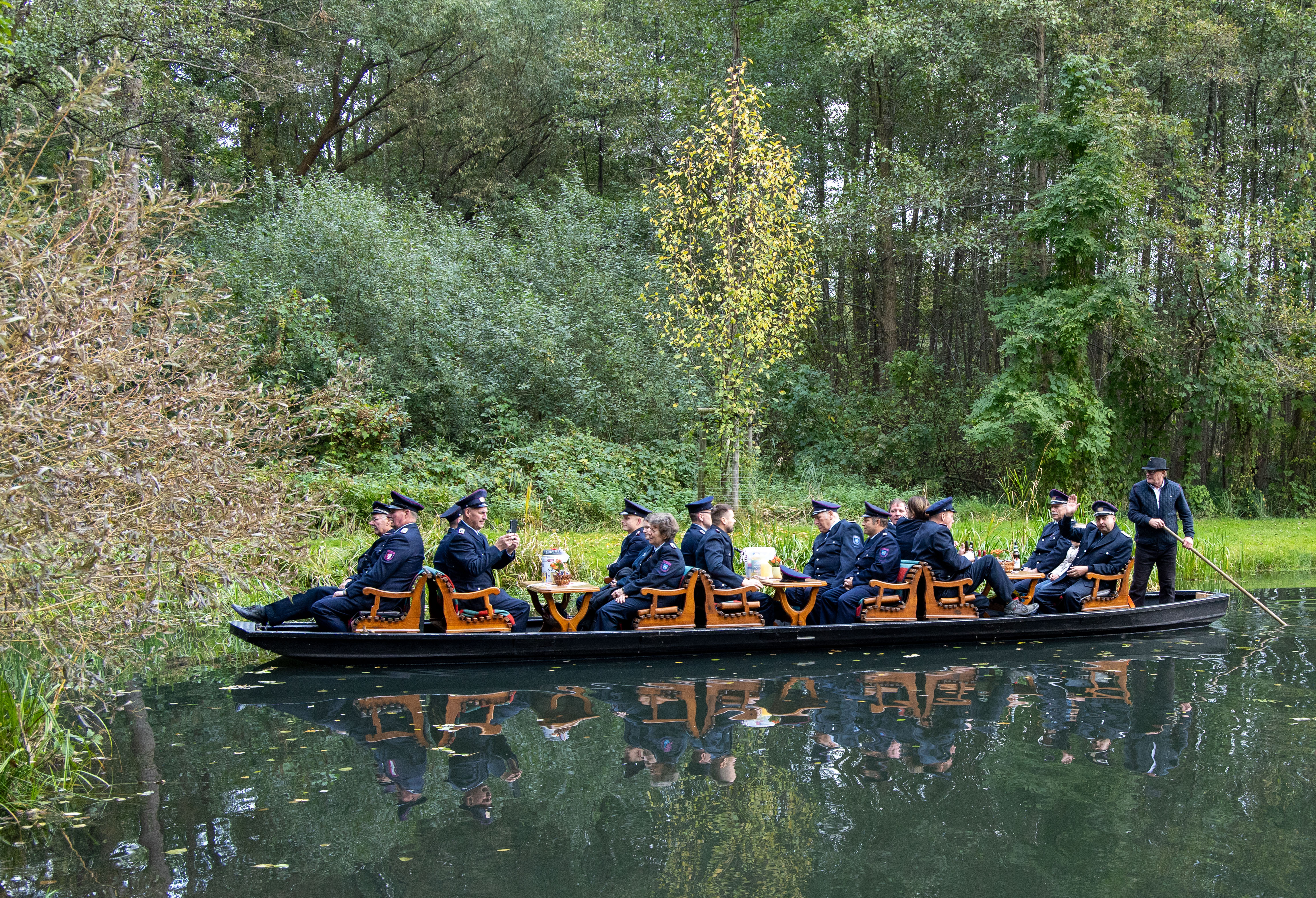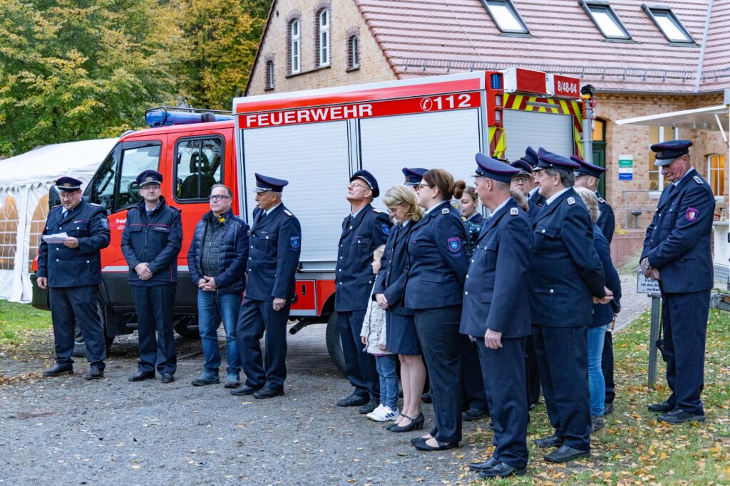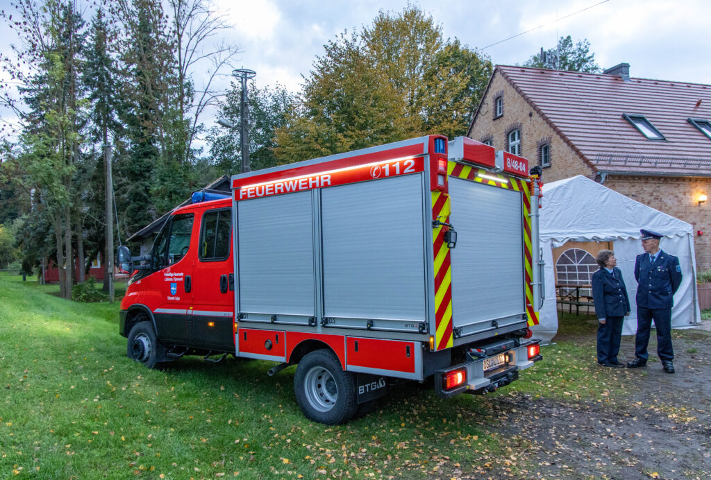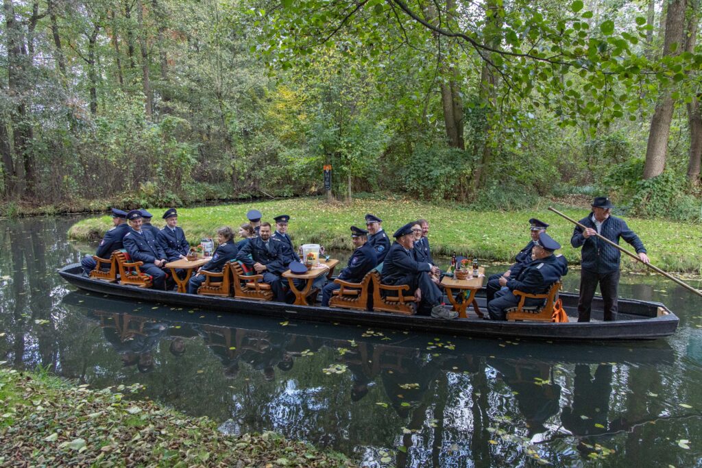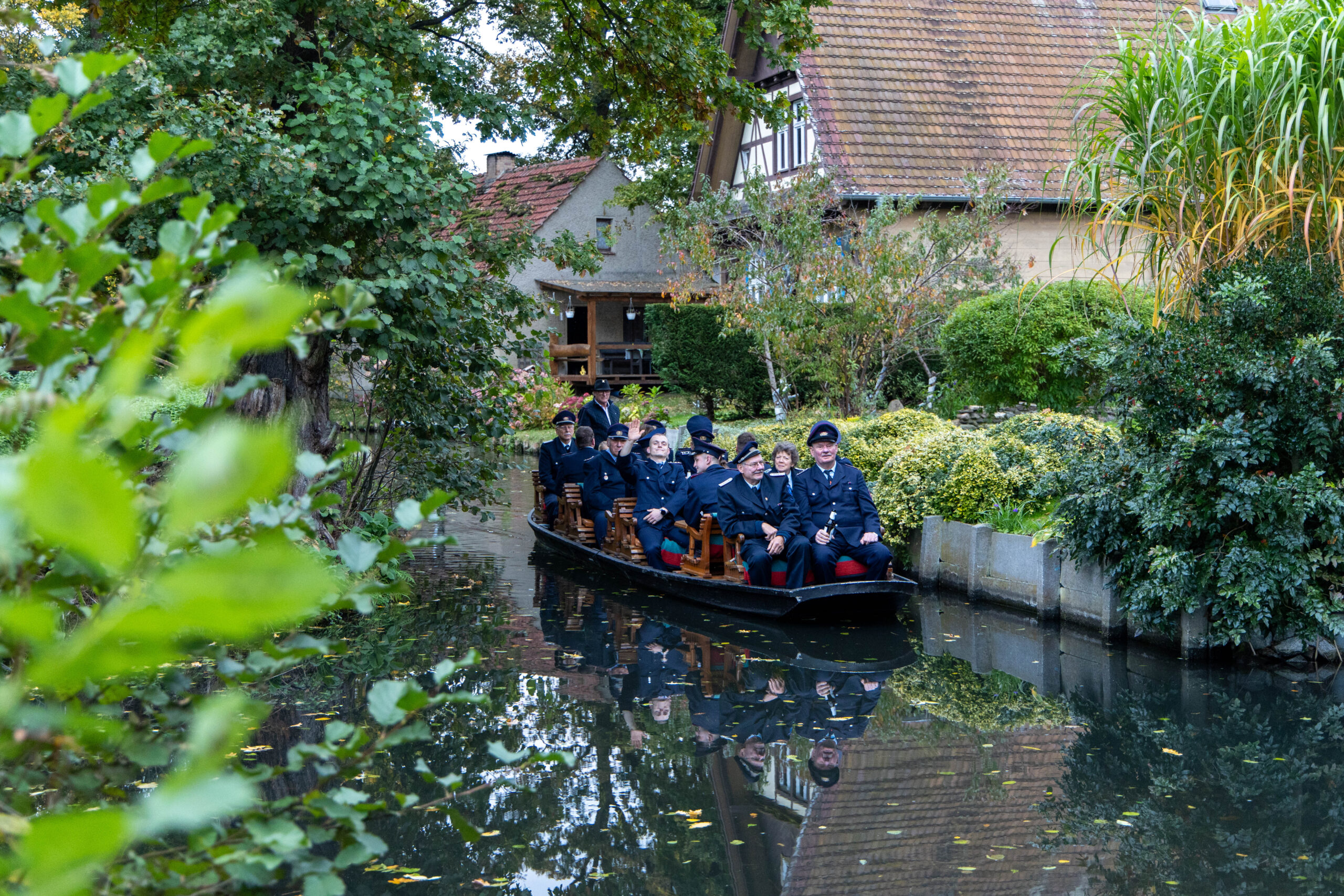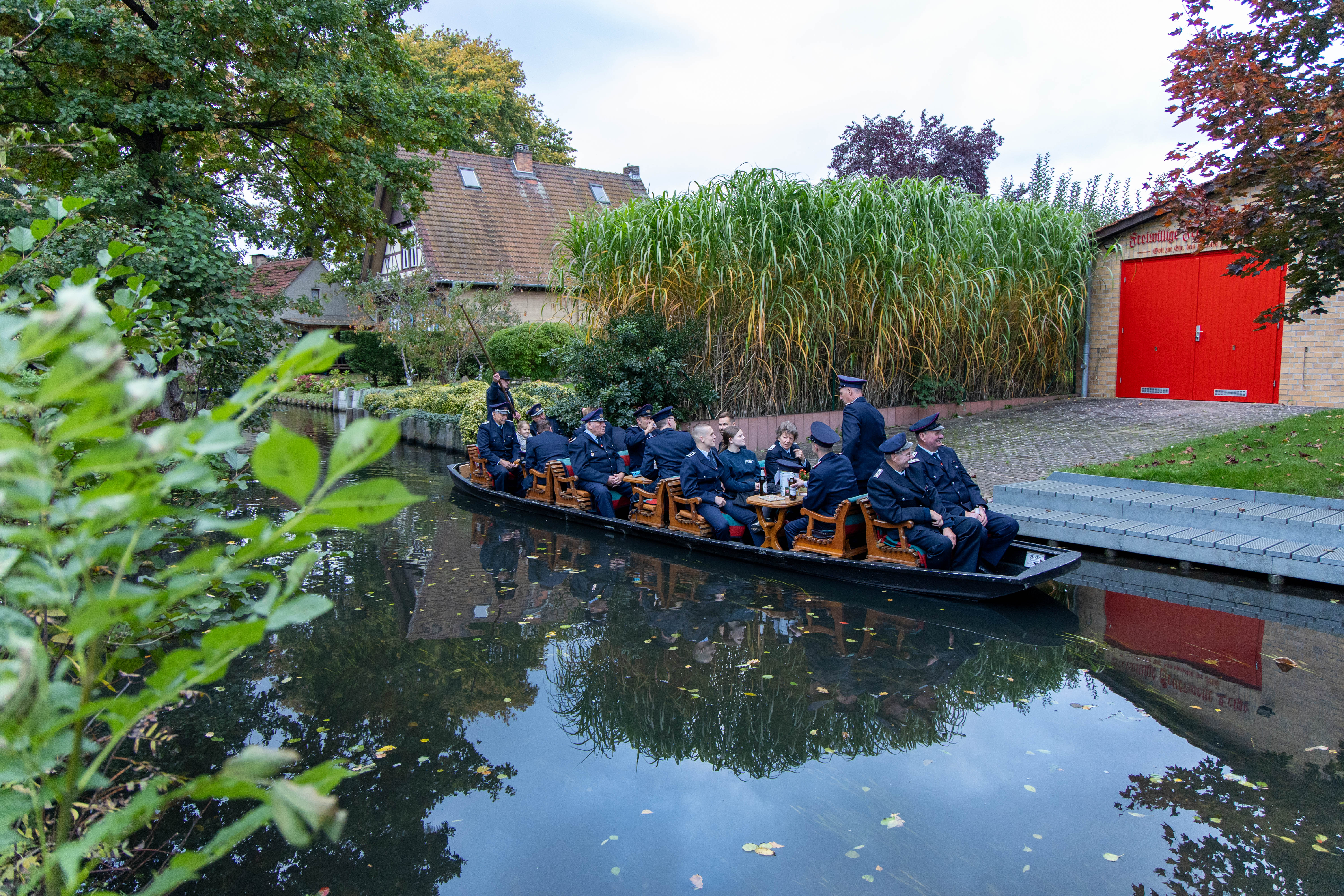 Nur noch wenige Touristen waren in Leipe unterwegs, als sich zwei Kähne, vollbesetzt mit Kameraden und Kameradinnen der Leiper Wehr ebenso, wie mit Abordnungen aus den Nachbarorten, auf den Weg machten. Sie waren gekommen, um nach einer Inselrundfahrt der Einweihung des neuen Tragkraftspritzenfahrzeugs (TSF-W) beizuwohnen, denn das 30 Jahre alte Fahrzeug, war ausgemustert worden.