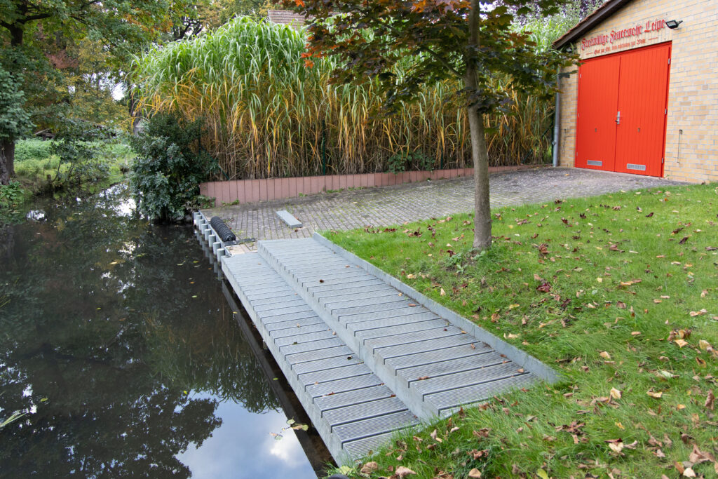 Die Leiper Wehr kann andererseits mit ihrem schon vor Jahren angeschafften Rettungsboot praktisch überall hin, dies ist aber speziell für eine Personenrettung gedacht. In Kombination mit dem neuen Fahrzeug lassen sich jetzt Rettungseinsätze besser koordinieren. Doch alles zieht auch Baumaßnahmen mit sich, denn der Steg hat sich als zu kurz erwiesen, die Garage fürs Auto ebenfalls – Umbaumaßnahmen mussten her! Lübbenaus Bürgermeister Helmut Wenzel beglückwünschte die Leiper zum neuen Fahrzeug, nannte aber ganz korrekt die zu Buche schlagenden Summen: „Wir haben 208.563,51 EUR fürs Auto und 76.694,47 EUR für den Anbau und somit in die Zukunftsfähigkeit der Leiper Wehr investiert!“