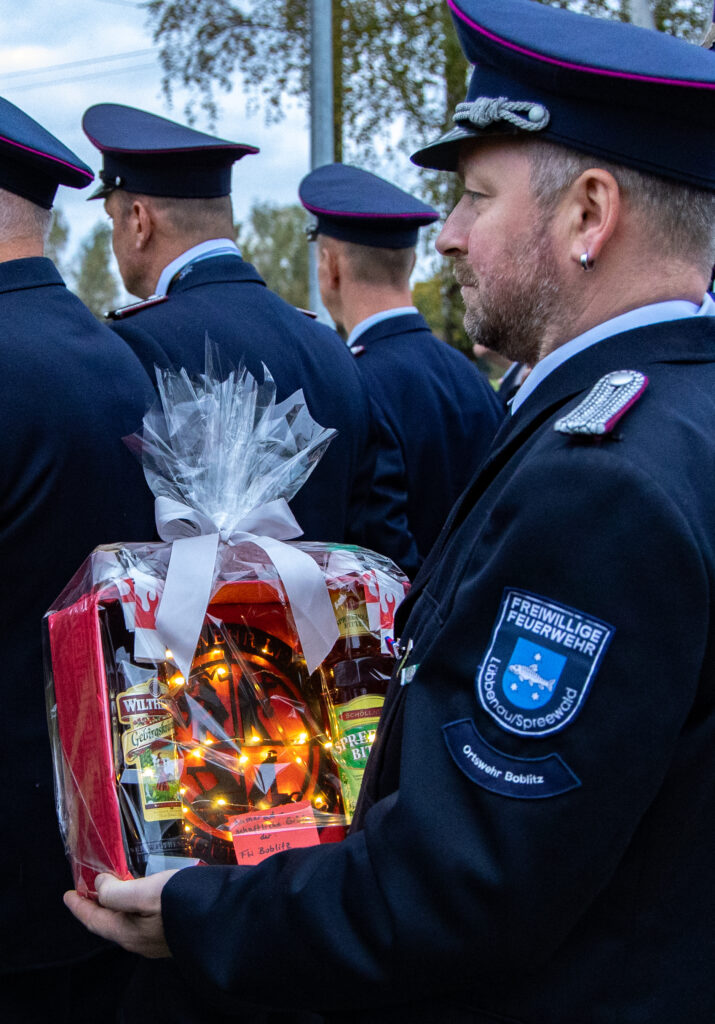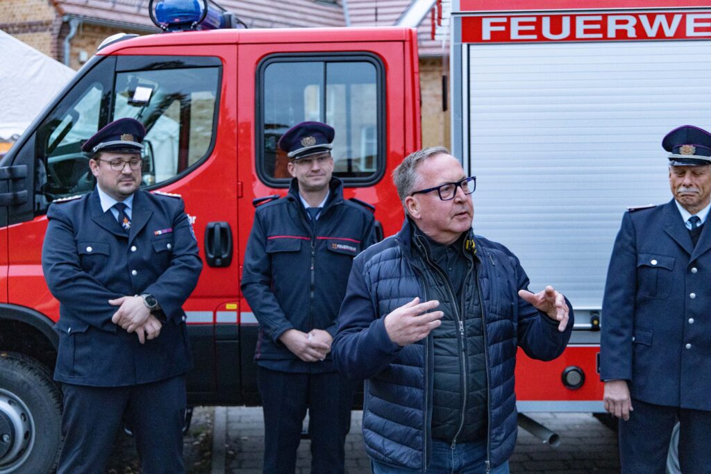 Wehrführer David Bromberger dankte, neben der Stadt auch seinen Kameraden und Kameradinnen, denn ohne deren, nicht mit Geld zu messenden Einsatz, würde es nicht diese „Dreiereinweihung“ geben. Für das Leiper Urgestein Herbert Konzack, seit Jahrzehnten bei der Feuerwehr, war dies Anlass genug, ein Fass Bier zu spendieren.