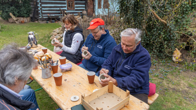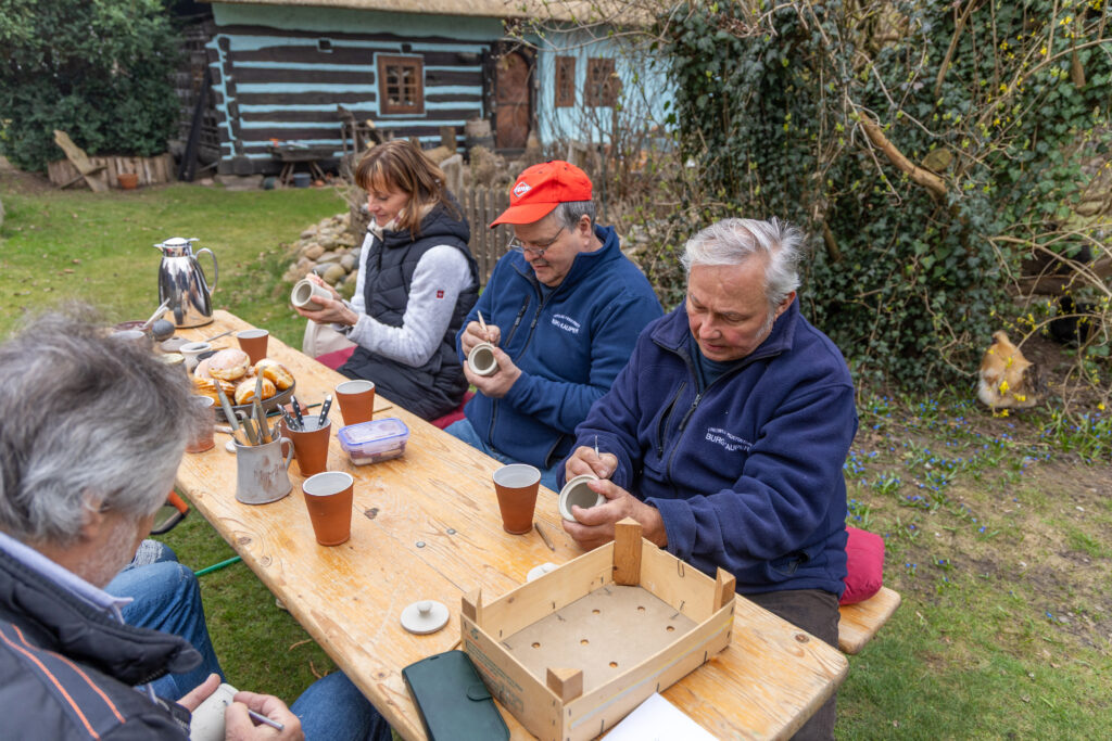 Bei der Woklapnica im Januar wurde vom Burger Bürgermeister Bernd Ragotzky angeregt, dass verdienstvolle Bürger nicht nur eine Ehrenurkunde bekommen, sondern auch beim Osterbrand ihren Namen auf einem keramischen Produkt ihrer Wahl – im wahrsten Sinne des Wortes- einbrennen lassen dürfen. Bernd Ragotzky dankte damit Heike Budarick für ihre Tätigkeit in der Kinderturngruppe, Fritz Matschenz und Rolf Zimmermann vom Förderverein Feuerwehr Burg-Kauper. Alle drei trafen sich in der Burger Töpferei, um unter Anleitung von Ilona Möbert, bei Kaffee und Kuchen, ihre Keramikgefäße zu gestalten. Die Osterfeuertradition erfährt so eine Aufwertung, ganz im Sinne des Nachhaltigkeitsgedankens. Mit Spannung wird dem Entnehmen der Produkte entgegengesehen. Doch vorher wird das Feuer erst mal auflodern müssen. Im Beisein vieler Osterurlauber wird es auf dem Kneipp-und Erlebnis-Campingplatz an den Spreewaldfließen entfacht werden.