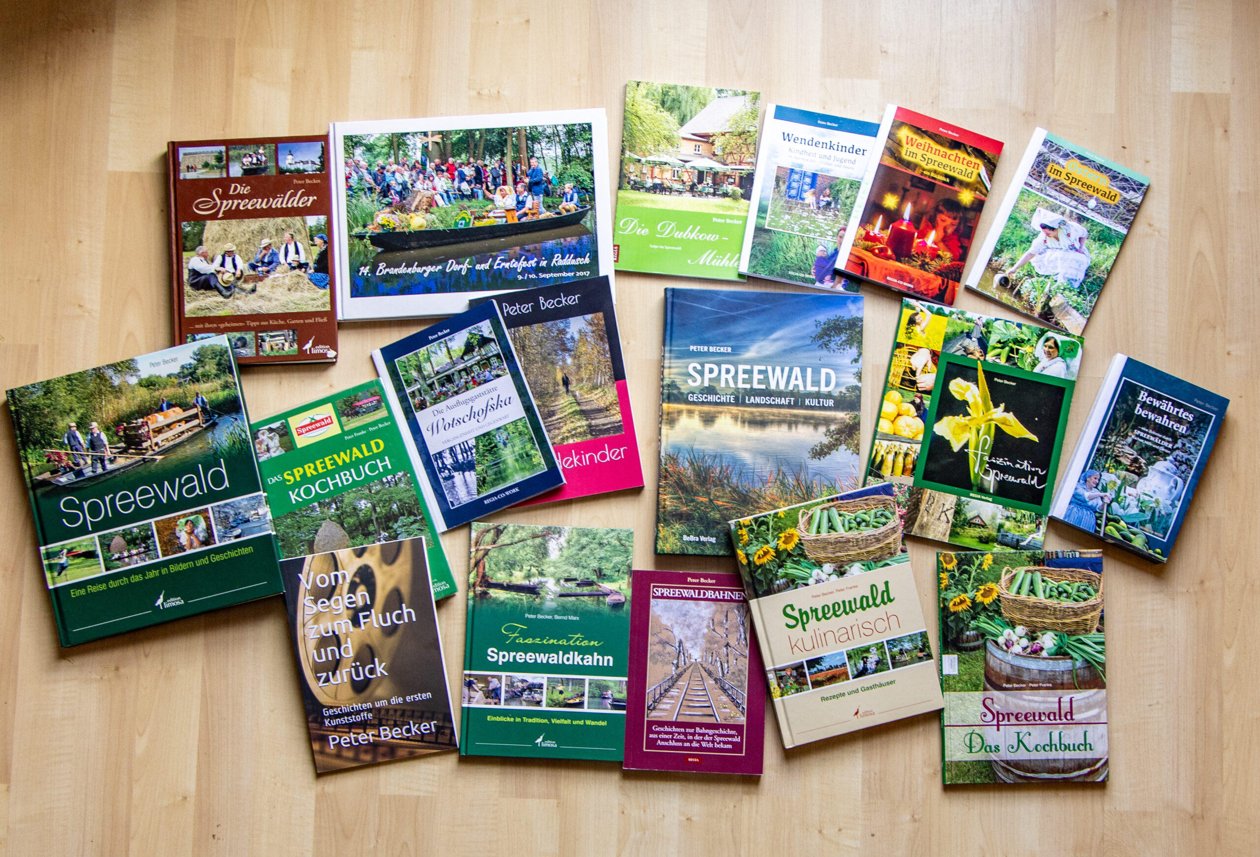 Im Laufe der Zeit entstanden nicht nur Presseartikel, sondern auch viele Bücher. Einige habe ich allein verfasst, andere mit Co-Autoren. Inhaltlich geht es um Traditionelles im Spreewald, wie Kahnbau, Geschichte der Gaststätten oder um überlieferte Kochrezepte. Alle sind reich mit meinen Fotos bebildert, wo es nicht ging, habe ich mich historischer Quellen bedient.
