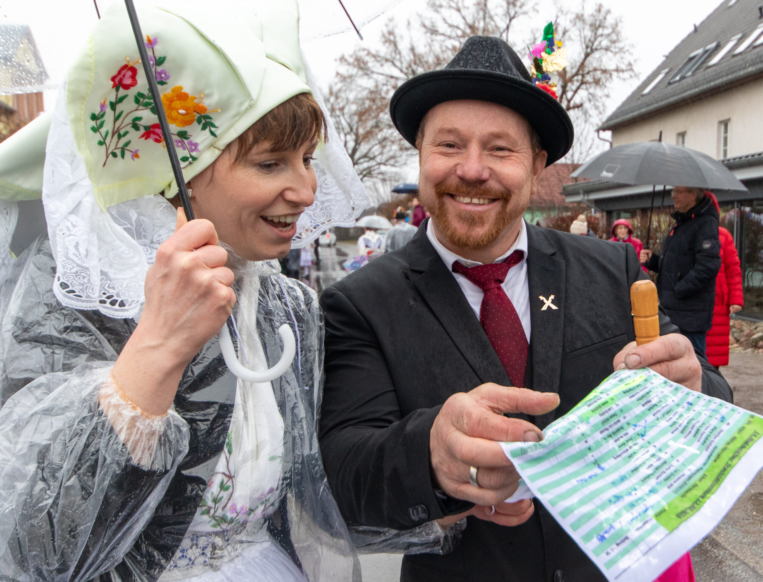 Zahlreiche Zuschauer, auch aus anderen Dörfern, trotzten ebenfalls dem Regen. Aus Tornitz kamen Carola und Lienhard Hahn. „Wir wollen mal sehen, wie sich unser Nachwuchs so anstellt. Sohn Alexander und seine Verena haben so etwas wie eine Premiere“, sagt Carola Hahn.
